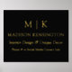 Modernes Minimalistisches Gold Foil Print Poster. Schwarzer Hintergrund oder wählen Sie Ihre eigene Farbe. Ideal für Kleinunternehmen, Firmenmarken, Selbstständige, kleine Kioske, Einzelhandelsgeschäfte, Messen & Events, Schönheitssalons, Wellness-Center, Caterer, Bäckereien, Kaffeehäuser, Restaurants, Bars und vieles mehr. Einfach mit Ihren Monogramm-Initialen, Firmennamen und Informationen, Fotos, Slogan oder sogar mit Ihrem Logo oder persönlichem Markendesign personalisieren.
