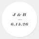 Minimalistisches Monogramm Schwarz-weiße Hochzeit Runder Aufkleber