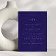 Eine minimalistische Hochzeitseinladung in reichhaltigem Mitternachtsblau mit sauberer weißer Typografie und einem raffinierten Monogramm. Der tiefe Farbton und das moderne Layout schaffen ein elegantes, zeitloses Aussehen, das perfekt für formelle oder zeitgenössische Feiern ist. Ideal für Paare, die unterschätzte Raffinesse mit einer kühnen, modernen Note lieben.