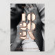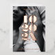 Echte Folie ist da! Volles Foto mit fett nummerischem Hochzeitdatum überlagert. Alle Texte sind in Goldfolie oder wählen Sie Silberfolie, Rose Folie nach Wunsch. Fügen Sie der Rückseite Text oder Fotos hinzu und bearbeiten Sie die Hintergrundfarbe.