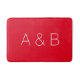 Minimalistisches rotes, benutzerdefiniertes Paar initialisiert Monogramm Bath Mat. weiße Buchstaben, roter Hintergrund. Modernes, elegantes Design.