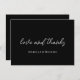 Maßgeschneiderte Hochzeit Dankeschön Karte. Mit Liebe und Dank in Skript in weißem Schriftart auf einem schwarzen Hintergrund. Mit einer anpassbaren Nachricht auf der Rückseite.