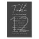 Diese schicke und moderne Hochzeitskarte mit einer Tischnummer aus dunkelgrauem Hintergrund mit weißen Schriftzeichen. Personalisieren Sie es für Ihre Bedürfnisse. In meinem Geschäft finden Sie passende Produkte.