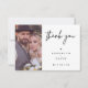 Minimalistisches Script Heart Wedding Dankeschön Karte Einfache, moderne, minimalistische Hochzeitskarte mit einer modernen Kalligraphie Titelbild Bild, Foto und Herz. Auf der Rückseite der Karte befinden sich auch das Paarfoto und eine Nachricht an Freunde und Familie.