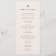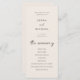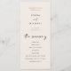 Minimalistisches Script Light Beige Hochzeitsprogramm. Fügen Sie Braut- und Bräutigam-Namen, Ihr Hochzeitstermin, den Ort und die Reihenfolge der Hochzeitsfeier auf der Vorderseite hinzu und fügen Sie die Namen der Hochzeit/des Brautparty auf der Rückseite hinzu.