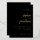 Diese eleganten, minimalistischen Einladungen in Goldfolie sind mit modernster Goldskripttypografie und sauberem Sans Serif-Text auf dunklem schwarzem Hintergrund für ein einfaches und stilvolles Design, das Sie Liebe.