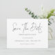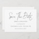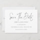 Minimalistisches Skript Jede Farbe Save the Date. Einfache Eleganz mit Save the Date in einem modernen Set-Skript.Die Erholung des Textes können Sie leicht personalisieren. Hier in schwarz auf weiß dargestellt können Sie jedoch Text- und Hintergrundfarben ändern, wenn Sie es wünschen, indem Sie über die Option Weitere Einstellungen vornehmen.