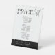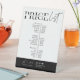 Minimalistisches Preisliste Pedestal Sign in modernem Schwarz-Weiß-Design mit trendigen Script-Schriftart. Dieses moderne und trendige Business-Menü bietet Platz für Ihren Firmennamen, Kontaktdetails und eine Liste der Services und Preise. Passen Sie den Text und die Farben an, um Ihre Marke Anzug, und erstellen Sie ein Top-Zeichen für die Preistabelle, das sich herausstellen wird. Ideal, um als Preisliste für Ihren Nagel-Wellness-Center, Friseur oder Schönheitssalon zu dienen.