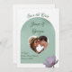 Diese minimalistische Acryl rosa Lotus Blume und hellgrüne Hochzeit speichern das Datum ist eine einfache und sehr romantische Ankündigung für Ihre besondere Zeremonie. Es kann mit Ihrem eigenen Foto und den Namen und Informationen personalisiert sein, die für Ihre kommende Hochzeit spezifisch sind