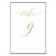 Diese minimalistisch weißen und goldenen Hochzeitskarten werden Ihrem Hochzeitsort eine Touch Eleganz verleihen. Dieses einfache Design-Template verfügt über ein modernes Imitat Gold Skript, das "Tabelle 9" lautet. Bitte Karo in unserem I Liebe Weddingz Shop für mehr Tischnummer Karten in diesem Set. Die besten Wünsche für Ihre Hochzeit und Ehe! Entworfen von Susan Coffey.
