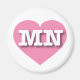 Dieser Magnet zeichnet sich durch ein pulsierendes rosa Herz aus, das die fett-, weiß-, Großbuchstaben MN, die offizielle Abkürzung für Minnesota, den Nordstar-Staat, enthält.