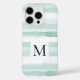 Mint Aqua Blue White Stripes Monogram iPhone 16 Pro Hülle