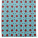 Refresh your bathroom with this vibrant mint-blue shower curtain, designed with repeating geometric motifs and bold red accents.
