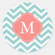 Mint & Coral Zigzags Muster Monogramm Runder Aufkleber