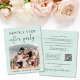 Günstige hellgrüne Einrichtung oder private Hochzeitsankündigung und Empfang-Einladung mit Ihrem Foto, "Happily Ever After Party" in einfacher Typografie und ein stilvolles Drehbuch mit Swashes und Ihren Vornamen und Hochzeitsdatum. Auf der Rückseite geben Sie Ihre Website-Adresse Ihrer Hochzeit, um einen QR-Code für Gäste zu erstellen, um alle Details zu scannen und online zu UAWG, personalisieren Sie Ihre Ankündigung und Empfang-Details und fügen Sie Ihre Namen in einem signaturähnlichen Skript.