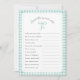 Editierbarer Spieltitel und Textfragen für Babydusche oder Brautparty. Mit einem handgemalten Bogen mit Gingham kariert Mint Green Rahmen und Backer.
