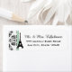 FÜGEN SIE IHREN NAMEN ZU DIESEN CHISCHEN UND HÜBSCHEN PARISISCHEN UND FRANZÖSISCHEN THEMEN RÜCKSENDEADRESSEN-AUFKLEBERN MIT EIFFEL TOWER AUF EINEM ELEGANTEN, SCHWARZEN UND WEISSEN DAMASK-FLORALEN HINTERGRUND UND EINEM DRUCKENDEN RIBBON AUSSEHEN DESIGN IN EINER LICHTEN GRÜNEN MINT. ENTWICKELT VON CHRISSY H. STUDIOS, LLC. ALLE RECHTE VORBEHALTEN.