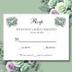Doté d'une carte RSVP mariage élégante avec des roses vert menthe et lavande. Ils sont une belle allumette à nos invitations de mariage et des cartes de prière dans la collection mariage de Mariages essentiels catholiques. Tout le texte et les polices peuvent être modifiés.