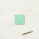 Hellgrüne Post-it-Noten mit einem fetten Monogramm und Signatur, ein elegantes, trendiges Objekt.