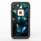 Minze Nacht glühende Schmetterlinge auf schwarz abstraktem Hintergrund.
