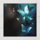 Minze Nacht glühende Schmetterlinge auf schwarz abstraktem Hintergrund.