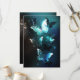 Minze Nacht glühende Schmetterlinge auf schwarz abstraktem Hintergrund.