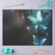 Minze Nacht glühende Schmetterlinge auf schwarz abstraktem Hintergrund.