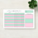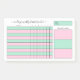 Wöchentlicher Gewohnheitstracker mit Pfosten in Pfefferminzgrün und cool rosa. Fügen Sie Ihren Namen in ein Thin-Skript ein. Das Merkzettel mit dem Gewohnheitstracker enthält eine praktische Tabelle, in der Sie jeden Wochentag mit bis zu zehn Gewohnheiten Karo machen können. Fügen Sie die Zeitspanne von Hand hinzu. Und auch drei wöchentliche Tore! Alle Kategorien sind für den Fall, dass Sie den woll haben, den Wortlaut oder sogar den Zweck des Planers zu ändern, individuell einstellbar.