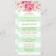 Maßgeschneidertes Hochzeitsprogramm in hellpastellfarbenem Minzgrün-Weiß Streifen mit Vintag rosa Blume. Passen Sie diese Reihenfolge der Zeremonie-Karten mit Ihrem eigenen Text an.