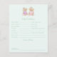 Lassen Sie Ihre Babyduschgäste diese niedliche Babyvorhersage und Ratenkarte ausfüllen, die eine niedliche, handgezeichnete Abbildung zweier Teddybären mit extravaganten Kleider und Hüten und einem Tee-Party enthält. Diese bezaubernde Teddy-Tee-Tee-Party-Tipp-Karte sorgt für einen wunderbaren Sake und ist eine lustige Aktivität für Ihre Tee-Party-Babydusche! Auf der Rückseite dieser Karte befindet sich eine handgemalte, minzgrüne Aquarellfarben-Rose, Teetassen und Teelöffelmuster, die gürtig und skurril ist.