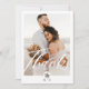 Merci à vos invités mariages avec notre carte de remerciements mariage moderne et minimaliste à deux photos. Le design comporte une grande photo sur le devant avec "Merci" affiché dans un script moderne. Conception moderne de monogramme de palmier d'arche pour customiser avec le monogramme du couple. Le revers comporte une deuxième photo avec un script "Amour" superposé et personnalisé avec votre propre message de remerciement. Conception par Moodthology Papery