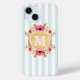 Telefongehäuse mit Minzstrippmuster, Aquarellpinke Blume und Imitat Goldfolie kundenspezifisch monogramm.
