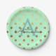 Minze and Gold Foil Polka Dots Monogram Birthday Pappteller
