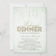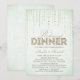 Dieses stilvolle Probe-Dinner-Einladungs-Design von The Gepunktet Olive™ zeichnet sich durch einen sanften Hintergrund aus, mit einem Bild von Streaming-Edelsteinen, das von oben herunter kommt, und dem Wort "Dinner", das mit einem Bild von Goldmedaille gefüllt ist. BITTE BEACHTEN SIE: DIESES DESIGN BIETET NUR EIN DRUCKENDES BILD VON GLITZER; ES GIBT KEINEN PHYSISCHEN GLITZER, DER VERWENDET ODER INKLUSIVE IST; ES GIBT KEINE EMBELLISHIERUNGEN. DAS IST EINE FLACHDRUCKTE EINLADUNG. Copyright 2014-Present | Der Gepunktete Olive™ | Alle Rechte vorbehalten