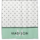 Dieser elegante Duschvorhang ist mit schwarz-weißen Polka-Punkten ausgestattet, die unten in Minzgrün eingerahmt sind. Personalisieren Sie mit Ihrem Namen und Initial.