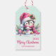 Diese personalisierten, rosa und minzgrünen Weihnachtsgeschenke-Tags mit einem "Frohen Weihnachten"-Gruß verfügen über einen niedlichen Pinguin auf einem ombre mint grünen Hintergrund. Mit der Vorlage können Sie Ihren Familiennamen und Ihr Jahr einfach eingeben.