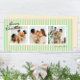 Kleine Pfefferminzgrün und cremefarbene Streifen verleihen dieser drei Foto-Urlaubskarte ein modernes und elegantes Ambiente mit klassischen Schriftart und eine lange, individuelle Botschaft für Freunde und Familie.