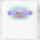 Minze Ice Blue Zickzack Patteryn Baby Ovaler Aufkleber