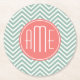Minze und Coral Chevrons Custom Monogram Runder Pappuntersetzer