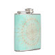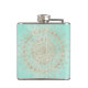 Elegante, stilvolle bohemianische Mandala, trendige Stammes-Blume, Glanz, Imitat goldene Folie Textur, weiß Aquarell kleine Pinselstriche malen auf einem Minzhintergrund. Punkte, Streifen, Dreiecke, geometrische Formen. Mandala blühende, mystische, verträumte, henna, Frühjahr, Sommer helle Farben. Mädchen, elegant, chic, trendig, einfach, Mode, künstlerisch, Kunst, Kunst, Kunstwerk