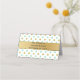 Hübsche gefaltete Platzkarte in Minzgrün und Gold auf weißem Polka Dottern. Die Grafik eines goldenen Farbbändchens verläuft über die Vorder- und Rückseite der Karte. Personalisieren Sie den benutzerdefinierten Text auf der Kartenrückseite, um zu lesen, was Sie gewollt haben. Personalisieren Sie die Vorderseite jeder Karte, von Hand, für Ihre Hochzeit Empfang.