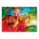 Farbenfrohe, skurrile und lebendige Venezianische Maskenfigur. Eine wunderschöne, raffinierte Blondine sitzt mit einer rote Rose und einer Federmaske in der Hand mit glänzenden goldenen Fuchsienstoffen aus einem barocken Maskenballkostüm mit Federn und einem Hund. Aquarellmalerei mit leuchtenden Farben in "gelb-blau-pink, grün, goldfarben und silberfarben", inspiriert von Figuren der Kunstkomödie ( Commedia dell' Arte ) , venezianischer Karneval und Venezianische Feather-Masken. Dieses coole und künstlerische Design ist auch ein wunderschönes Geschenk für besondere Anlässe, Geburtstage, Valentinstag, Mardi Gras ( Fat .