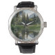 Uhr, Vintage Männeruhr mit schwarzem Lederarmband