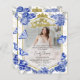 Erleben Sie das Wesen Ihrer Quinceañera-Feier mit unseren Tiara- und Schmetterlingsthemen-Einladungen zum Foto. Zauberhafte Erinnerungen mit königsblauen Blumendesigns in Aquarellfarbe, die mit funkelnden Konfetti verwoben sind und alle in einem modernen geometrischen Rahmen untergebracht sind. Diese bezaubernden Einladungen werden den Ton für ein unvergessliches Meilenstein-Fest Set.