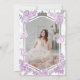 Der "Mis Quince Foto Invitation Spanish Lavender" ist eine elegant gestaltete Einladung, die sich ideal für eine Quinceanera-Feier eignet. Diese Einladung zeigt lebendige Aquarelllavender Blumenmuster, die mit exquisiten Schmetterlingen und einem Tiara-Akzent verwoben sind und die Veranstaltung mit Eleganz und Freude bereichern. Sie wurde von CaMiDesigns erstellt und kann einfach und schnell mit Ihren Daten personalisiert werden. Für Bestellungen, Versand, Produktinformationen und zusätzliche Unterstützung wenden Sie sich bitte direkt an den Zazzle Kundenservice.