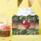Zwei bezaubernde Mäuse stehen spielerisch auf einem glänzenden, roten Weihnachtsschmuck, der an den Ästen eines grünen Tannenbaumes hängt