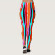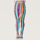 Diese Leggings haben ein einfaches Design von vertikalen Streifen mit unterschiedlichen Stärken in Rot, Orange, lila, Schwarz, Hellblau und Weiß.