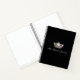 Dieses Spiralnotebook wird in schwarzem Schwarz mit einem Druck einer glänzenden Silberkrone auf dem Cover gezeigt und verfügt über Skizzenseiten, mit denen Sie Ihre speziellen Fotos platzieren können. Unter der Krone sind die Beispielwörter von "Meine besondere Reise" in extravagantem Skript gewartet, damit Sie Ihr Thema individuell gestalten können. Rückseite schwarz mit einer kleinen silbernen Krone ganz hinten. Sie können dieses Notebook anpassen und aus anderen Arten von Papier und Farbe der Bindung wählen, oder kaufen, wie gezeigt.