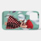 Dieses trendige Retro-Design mit floralen Collage iPhone-Gehäuse mit einer stilvollen Frau, die ein Polka-Dot-Kleid mit einer rote Rose als Kopf trägt. Blätter in Weiß, Silber und ein aquamariner Farbton bilden den Hintergrund, zusammen mit geometrischen Linien, die an zwei Seiten des Designs verlaufen. Der aquamarin/aqua Hintergrund fügt diesem lustigen Design einen Pop von Farbe und Kontrast hinzu. Eine Textvorlage ist enthalten, die Sie mit Wörtern, Ihrem Namen oder Monogramm oder beliebigen gewünschten Text personalisieren können.