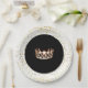 Diese Teller werden in einem niedlichen Druck kleiner goldfarbener Stars rund um den weißen Rand und eine glänzende Goldkrone im Schwarzen Zentrum gezeigt. In der Größe von 9" angezeigt. Anpassen oder kaufen, wie gezeigt.